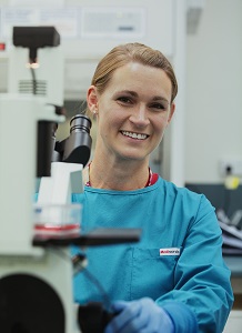 Seeing it ... As a Surveyor with Land Tasmania, Briallen Hall (pictured left) provides important geodetic and mapping services to Tasmanians. Emily Spencer (right) a Research Microbiologist at Biosecurity Tasmania, develops vaccines to keep fish species healthy.