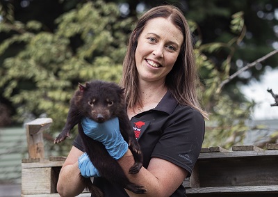 Wildlife Officer Olivia Barnard (left) cares for captive devils at the Cressy Wildlife Centre in her work for the Save the Tasmanian Devil Program. Rebecca Coleman (right), Biosecurity Inspector at Biosecurity Tasmania, plays a vital role in protecting the State from the negative impacts of pests, diseases and weeds.